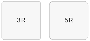 3R のほうが角丸が小さく、5R のほうが角丸が大きいです。