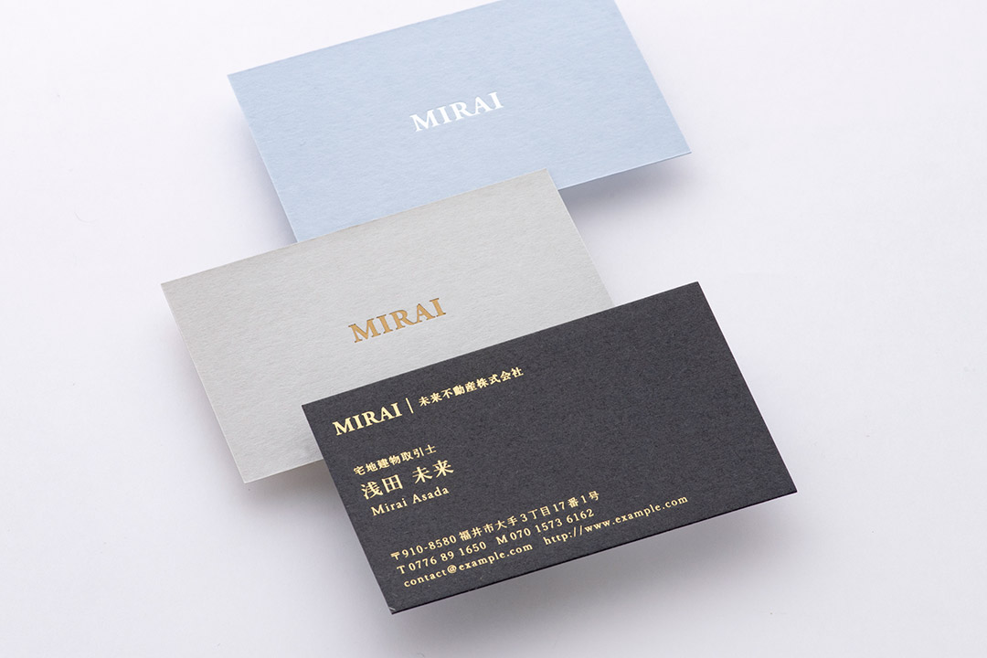 唯一無二の箔の輝きと、手に取った瞬間から伝わる重厚な紙の質感が、ひと目で“ワンランク上”の印象を与えてくれます。情報を伝えるだけでなく、相手の記憶に残る名刺として、確かな差別化が可能です。
