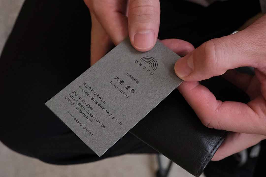 だから、『名刺が安っぽくない』『しっかりしたものを使っている』ということが、『akeru』という会社のブランディングを作っていくうえですごく大事なんです」