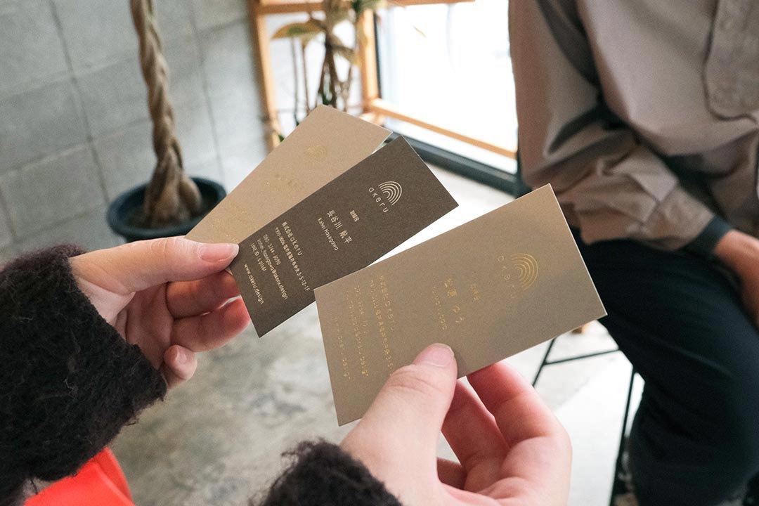 「今の時代、デジタルでなんでも完結してしまうし、名刺に載っている電話番号やメールアドレスに連絡する機会は少なくなってきていますよね。でも、名刺交換という場はまだ続いている。それなら『名刺に意味を持たせる』ということを大事にしようと思って、箔押しで作ることを選びました」