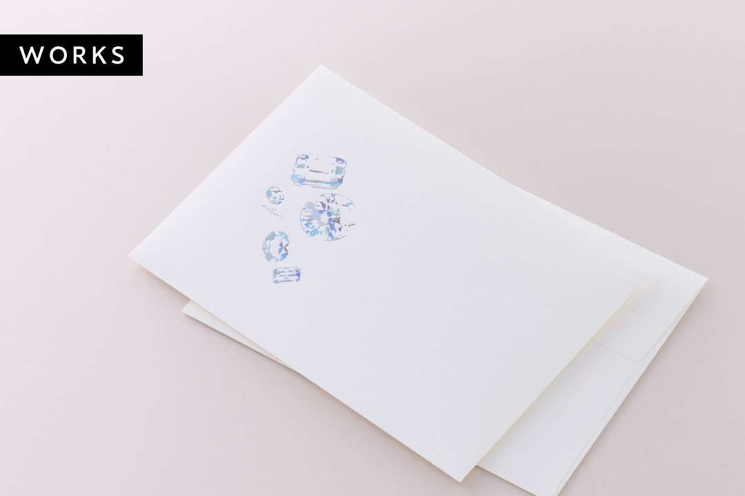 高級感のあるスノーホワイト色と、封筒の高級箔押し印刷の組み合わせを、是非お楽しみください。