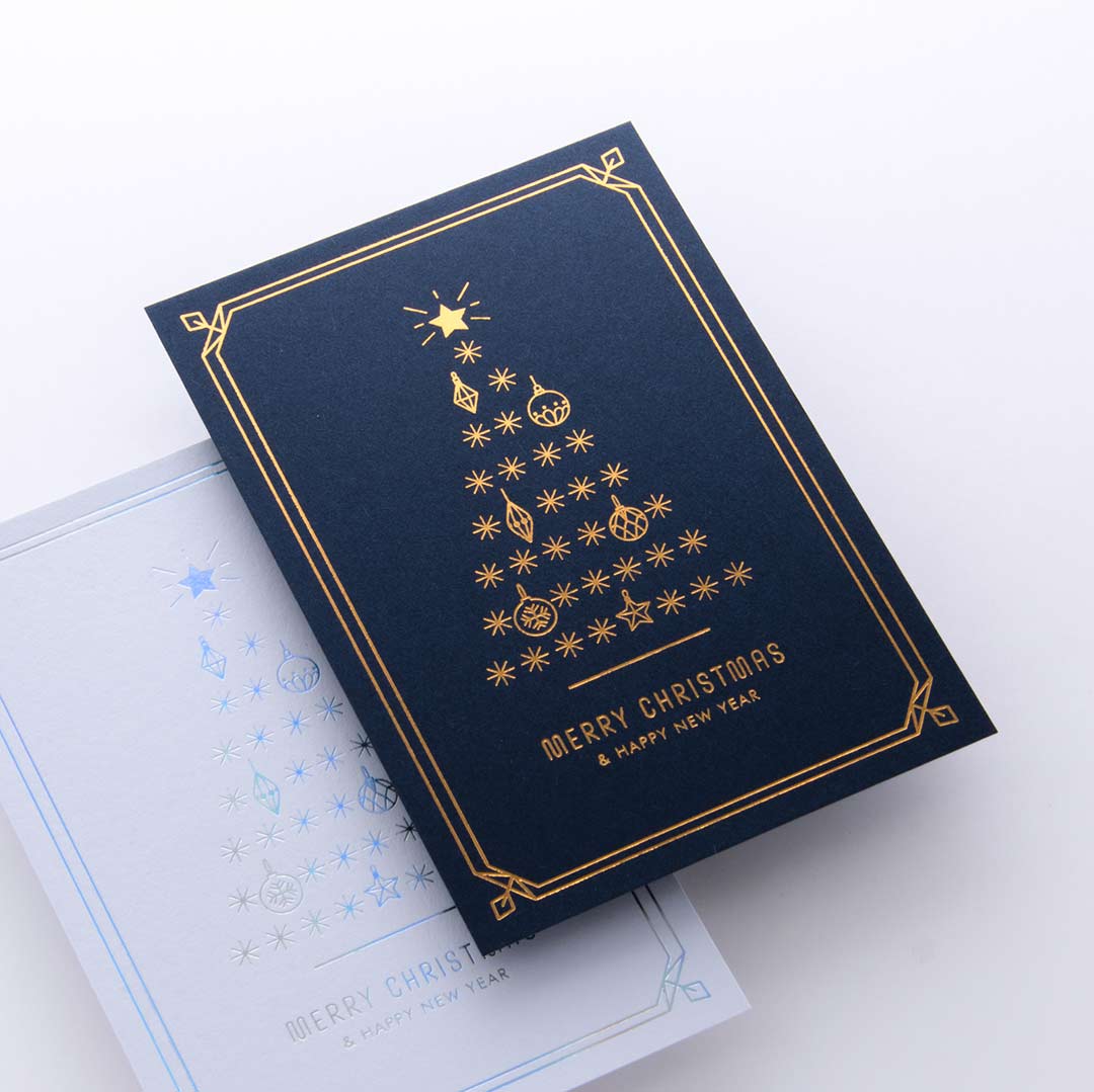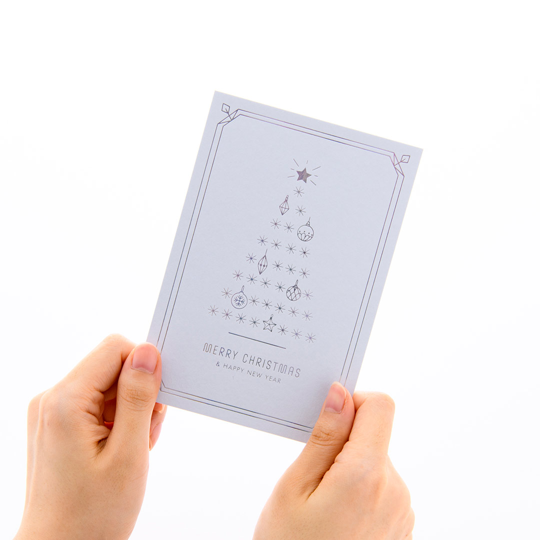 海外では、クリスマスカードをクリスマスツリーに飾るという習慣のある場所があります。クリスマスカードがツリーに飾られてるのを想像するだけで素敵です。かわいいクリスマスカードは目の前にあるだけで気持ちが上がります。美しい高級特殊紙と箔押し印刷で作られたカードは他とは圧倒的な違いを感じます。ブランディングツールの一つとして是非ご活用ください。