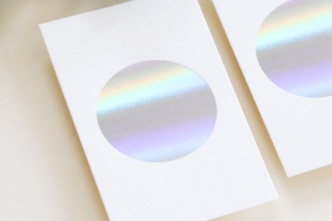 七色に輝き、白紙に合わせれば涼しげな印象。