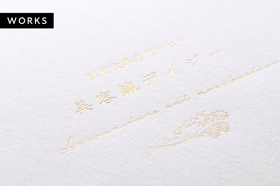 同じ面で複数の箔を使い分ける『複数箇所箔押し加工』も可能です。複数ヶ所箔押し加工の配色については、ご入稿いただくデザインデータにてご指定下さい。
