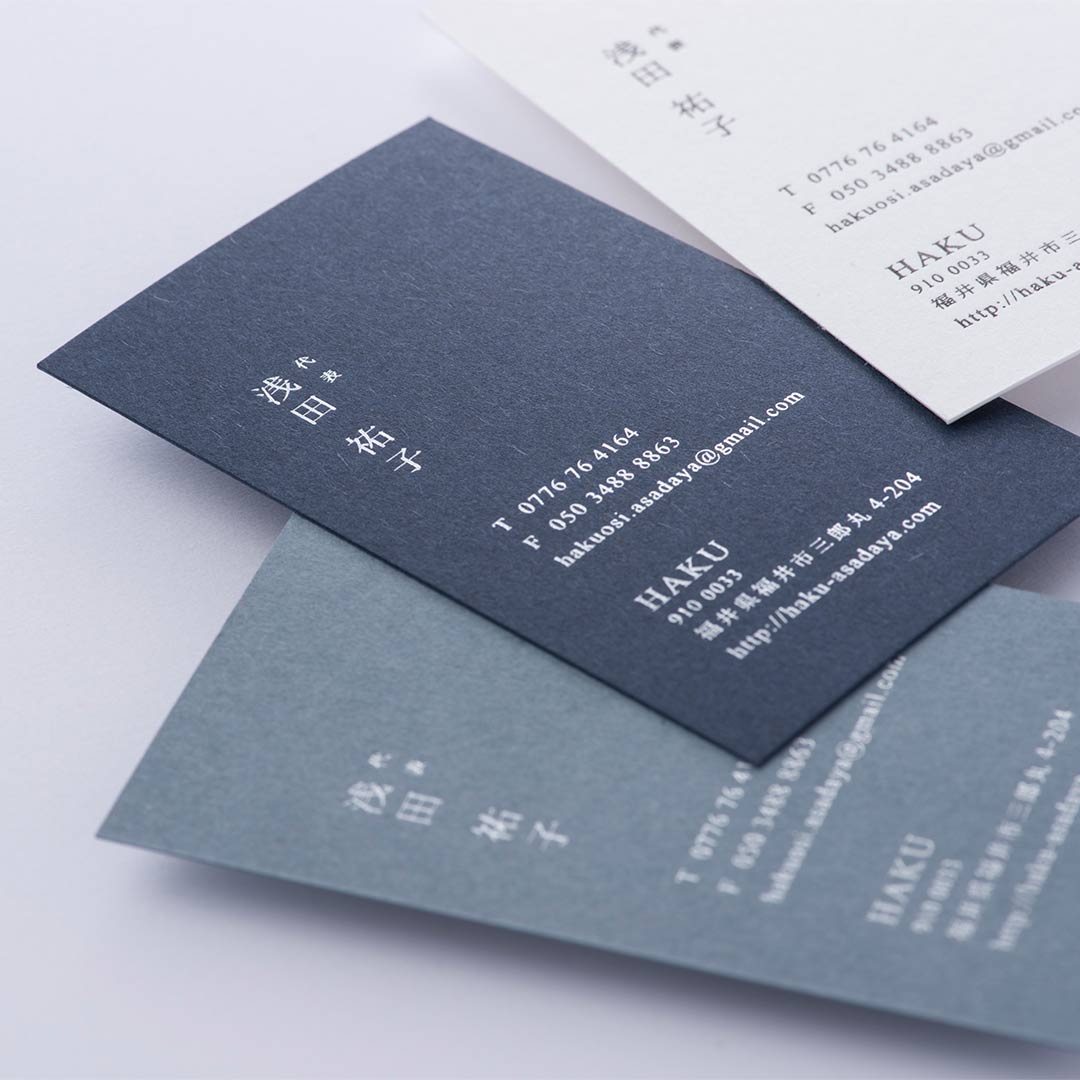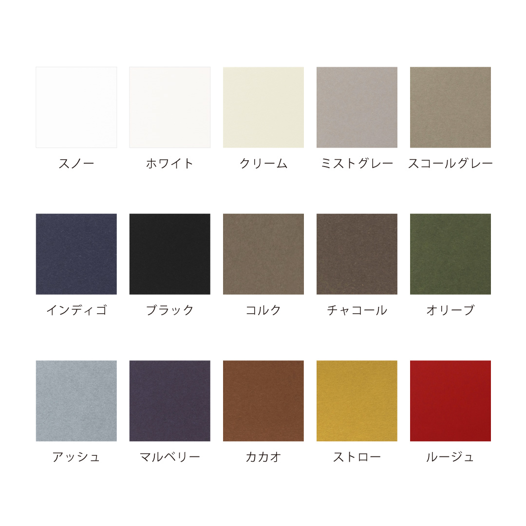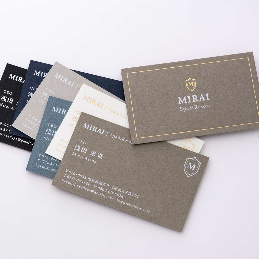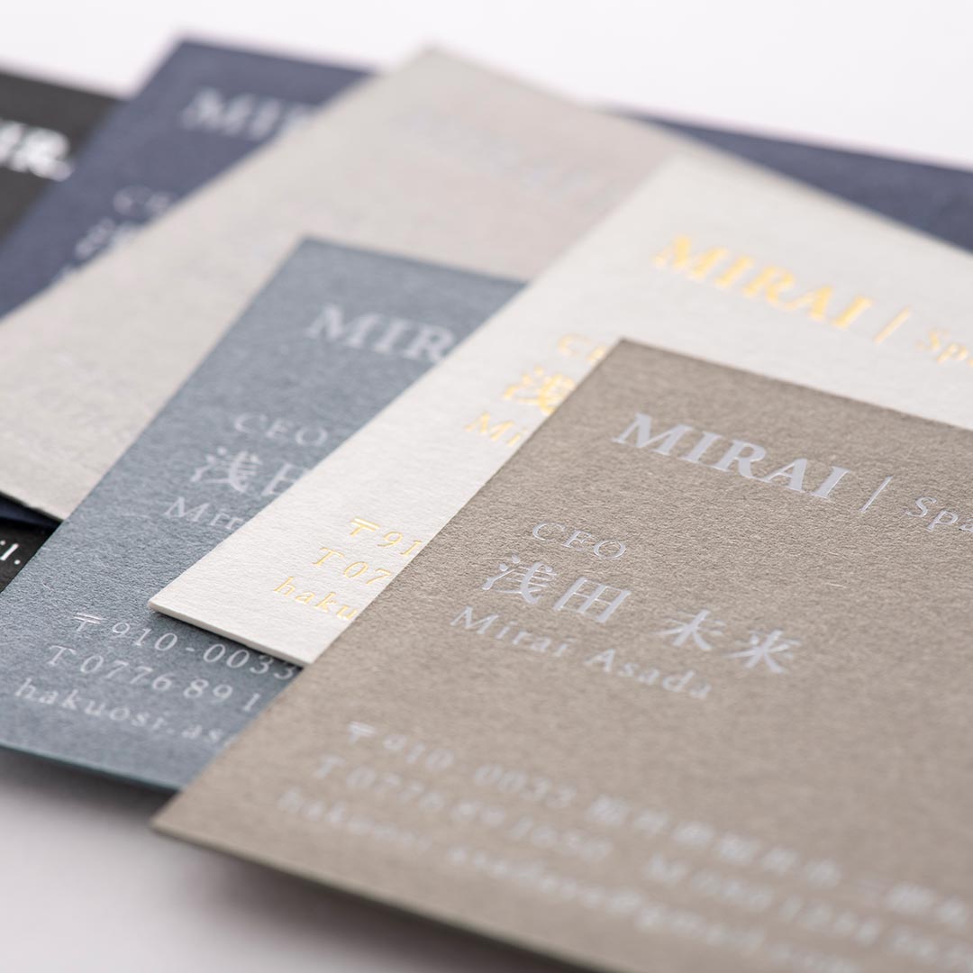 高級名刺の定番。渋みのあるカラーバリエーションが揃うディープマット紙。しっかり厚みがあり手触りはサラッとした質感。落ち着いた大人な印象から「信頼感」を大切にしている士業の先生や、コンサルタントの方から人気。スコールグレーやミストグレーといった紙色では「センス」を大切にする設計士やデザイナーといった業種の方から高い人気があります。箔押しの相性が非常によく、最近ではモノクロ印刷や白印刷と組み合わせて名刺を作る方がいます。