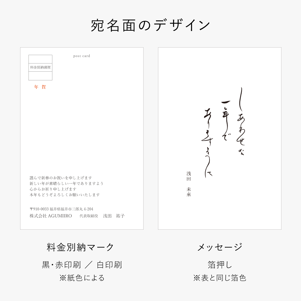※宛名面にメッセージを印字する場合は印刷ではなく、箔押しになります。(※別途お見積り)