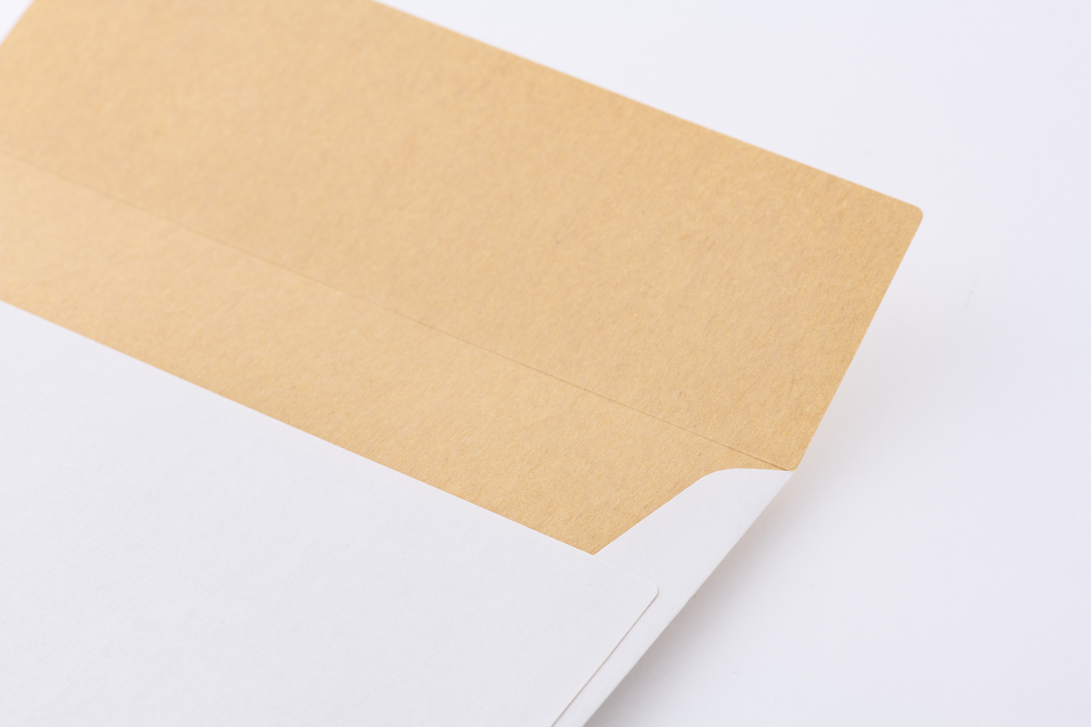 ホワイトクラフトNは、内面が明るいクラフト紙、外面がホワイトのリバーシブルタイプの封筒です。