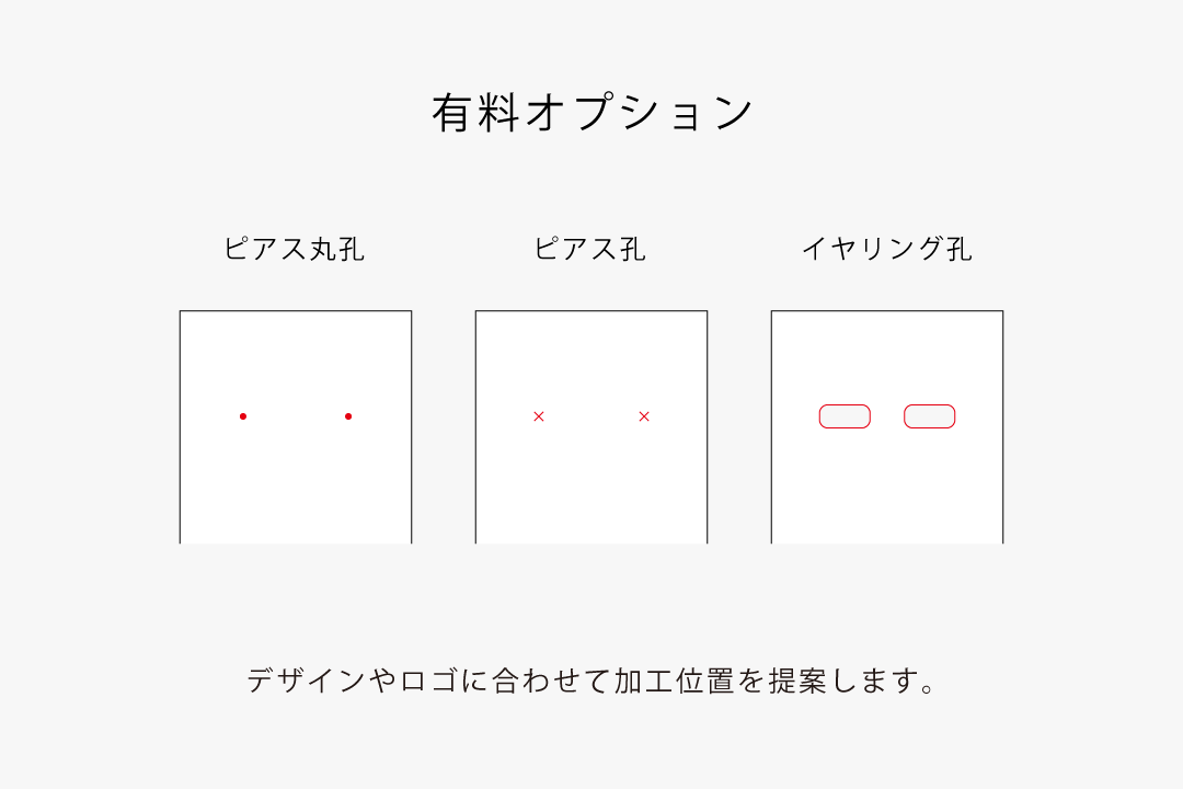 ○ 有料オプションでのピアス孔加工等