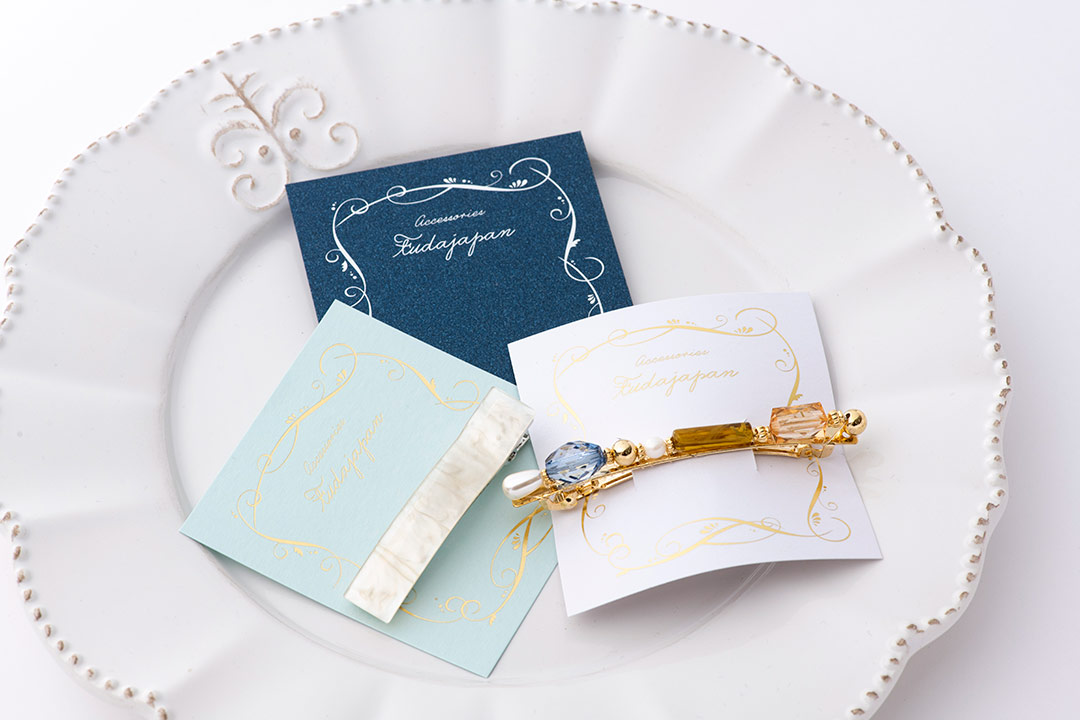 同じ面で複数の箔を使い分ける『複数箇所箔押し加工』も可能です。複数ヶ所箔押し加工の配色については、ご入稿いただくデザインデータにてご指定下さい。