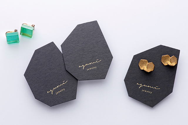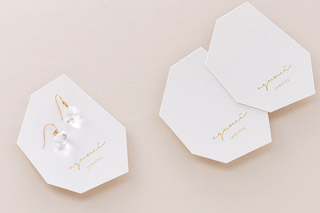 鉱石のかけらのような、不規則でラフなフォルムが印象的なアクセサリー台紙。