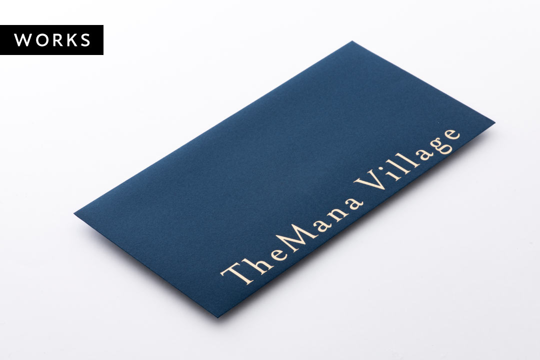 深い青色が魅力のネイビー封筒。藍色ともいえる綺麗な青で、箔押し加工すると華やかな印象になります。金箔・銀箔・つや消し金箔など、どの箔色とも相性が良いです。ミッドナイトブルー封筒と比較すると、ミッドナイトブルーが鉄紺(黒さのある青)といった渋めな印象でネイビー封筒は青々としていることから、より青をお求めの方にはネイビー封筒がおすすめです。封筒は表面だけでなく裏面や、フタ部分への箔押し加工も可能です。
