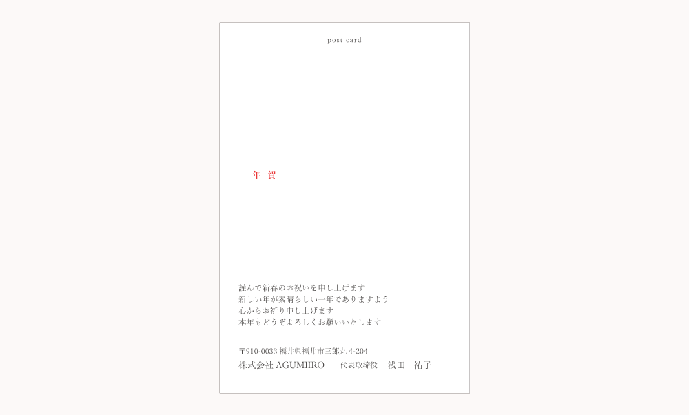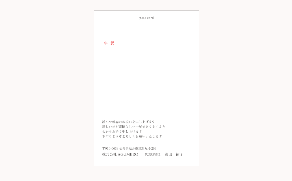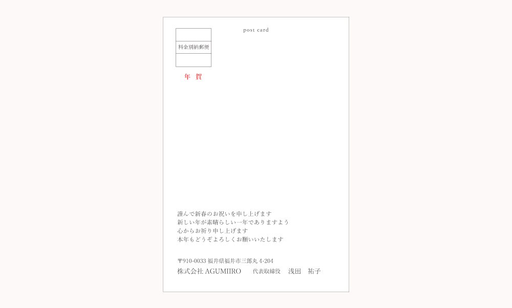 ※宛名面にメッセージを印字する場合は印刷ではなく、箔押しになります。(※別途お見積り)